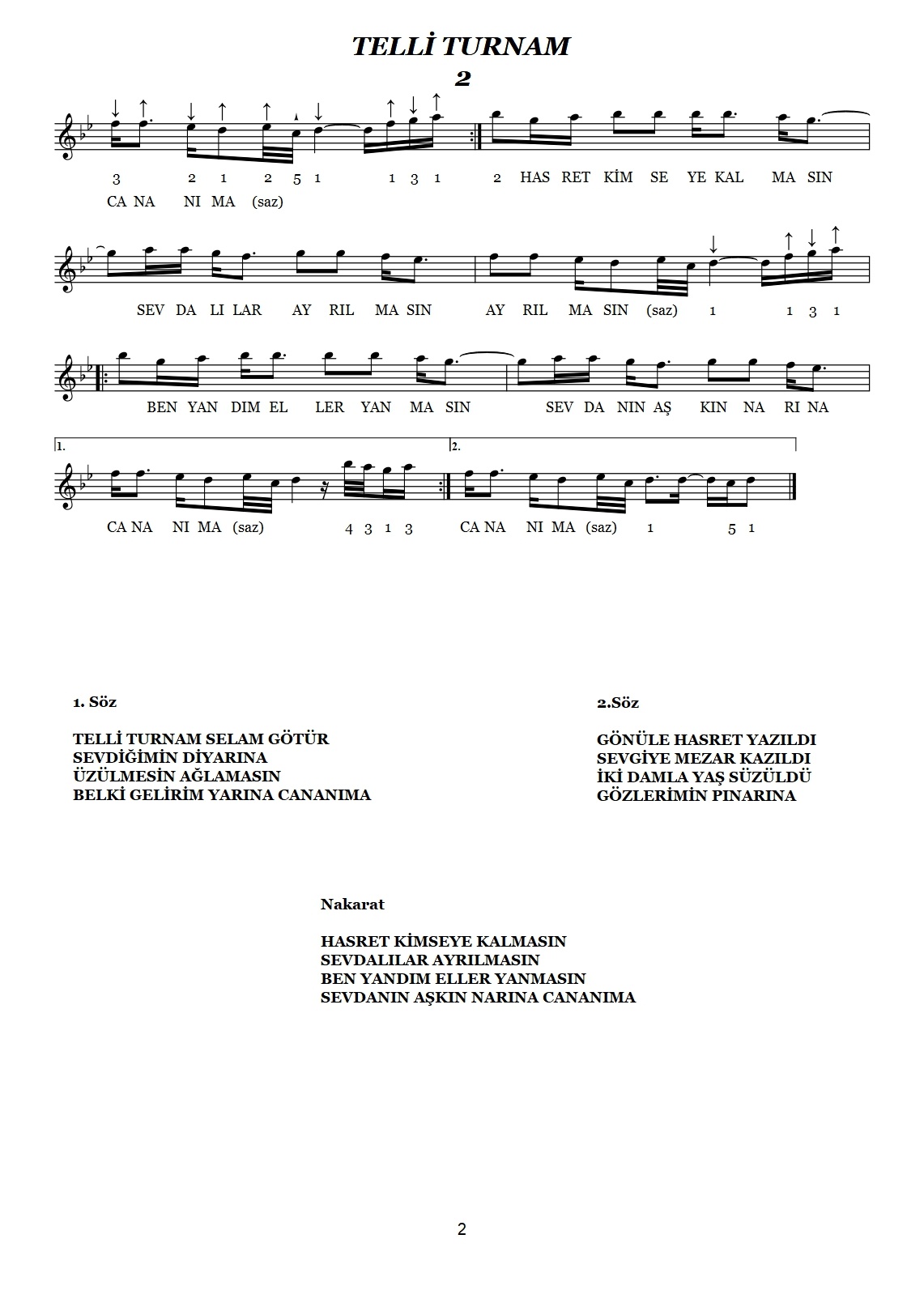 TELLİ TURNAM SELAM GÖTÜR Nota 2. Sayfa