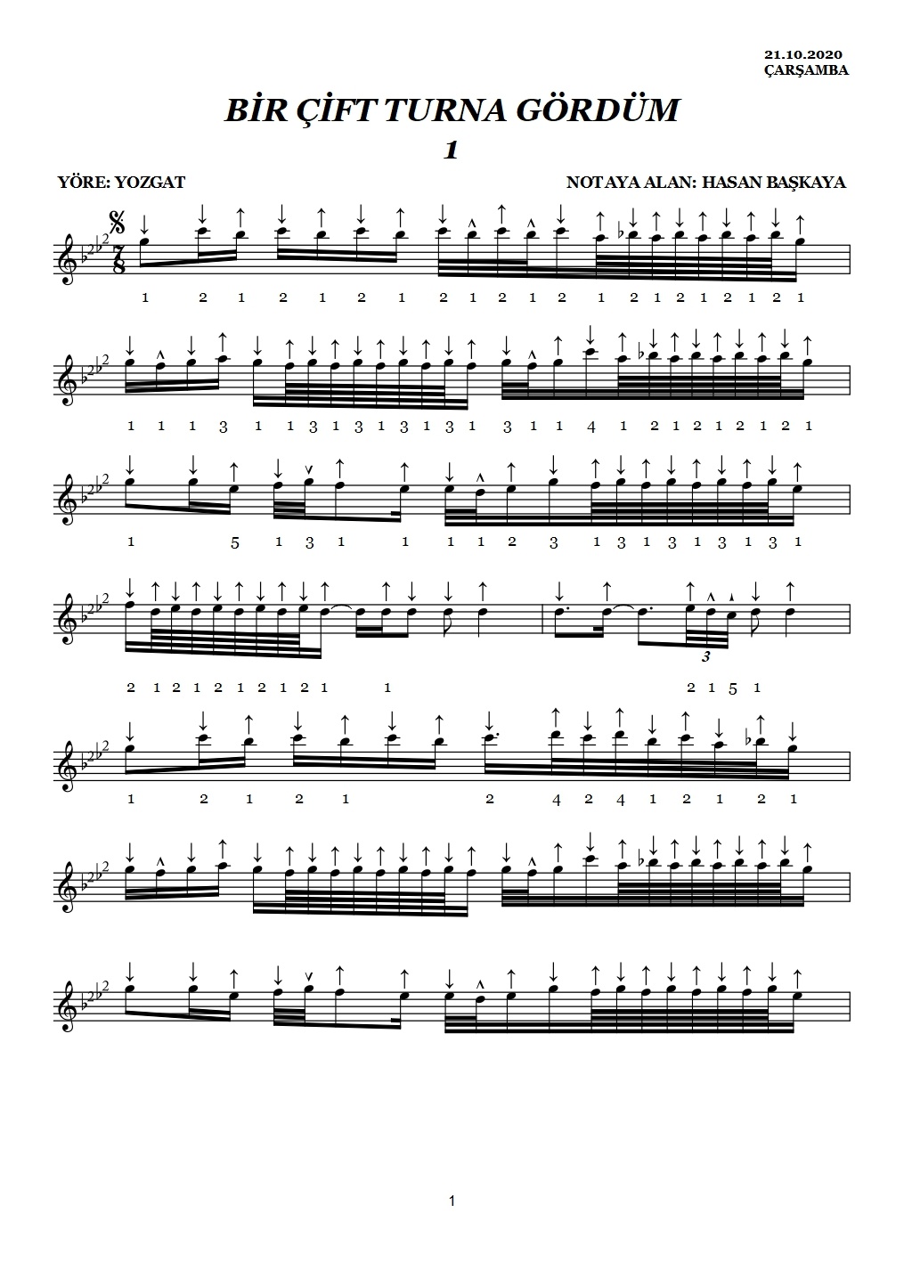 Bir Çift Turna Gördüm Durur Dallarda Nota 1. Sayfa