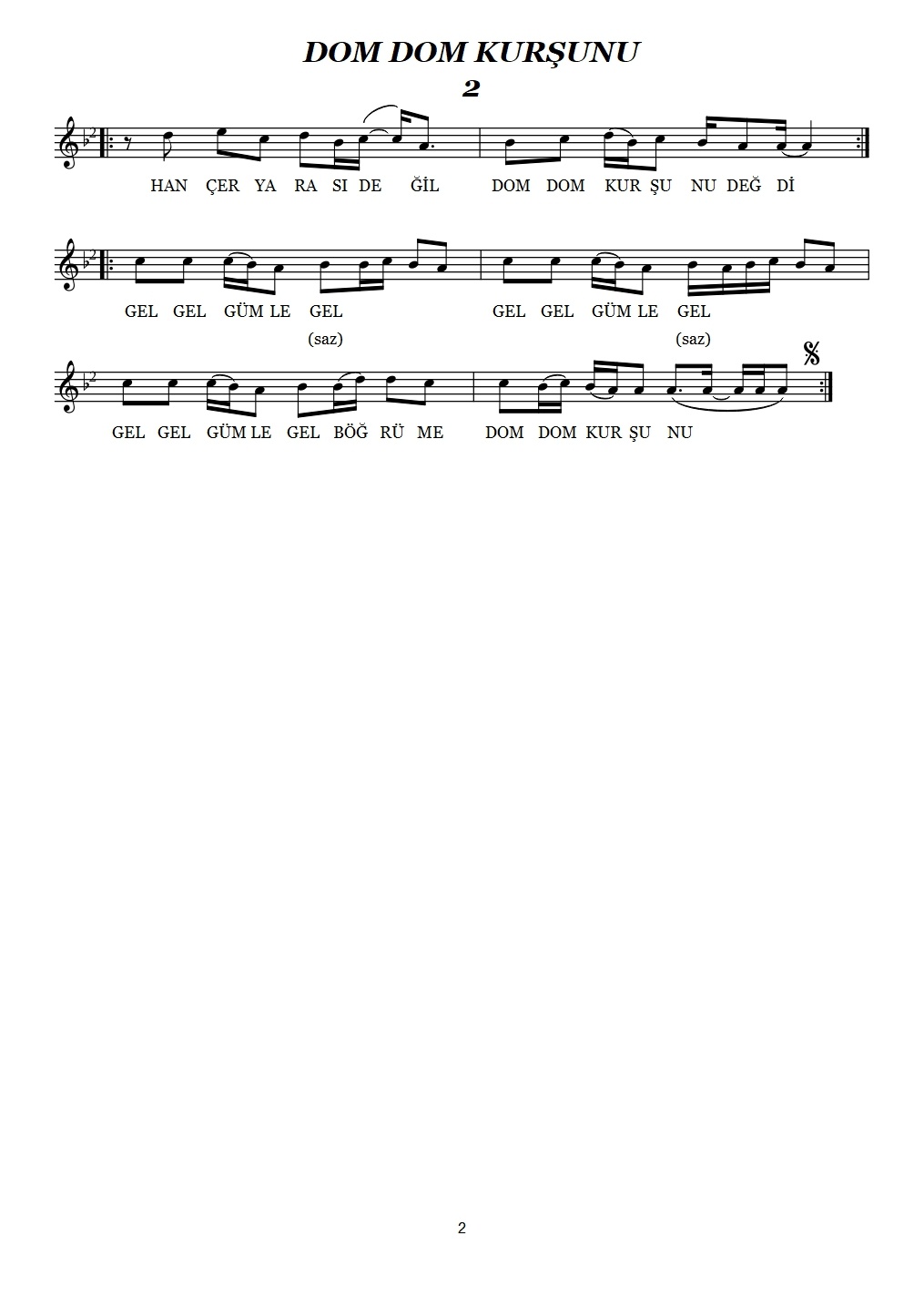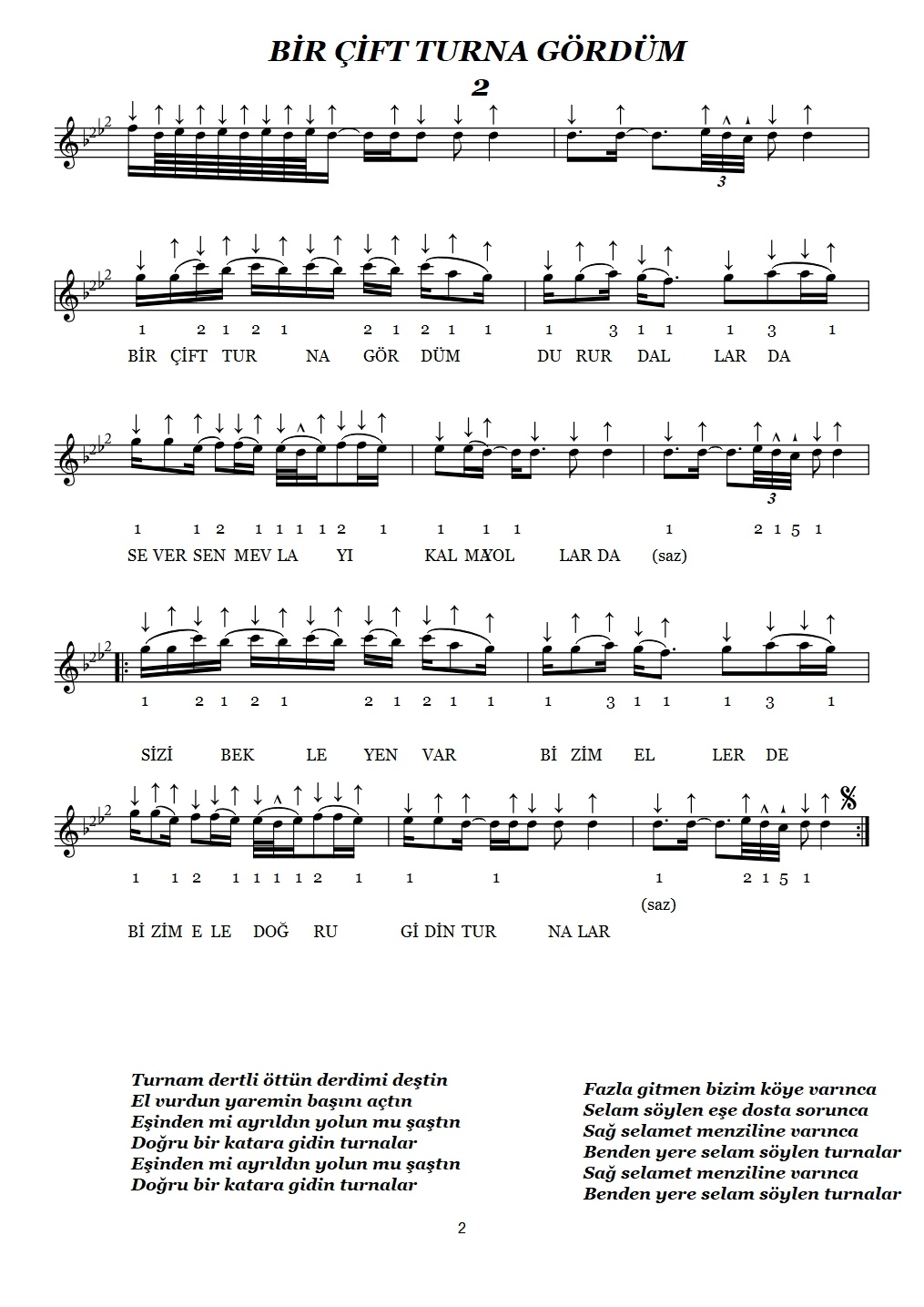 Bir Çift Turna Gördüm Durur Dallarda Nota 2. Sayfa