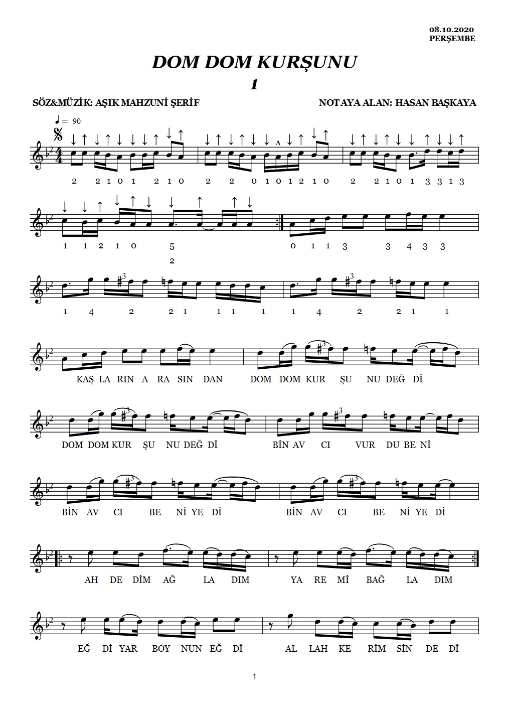 Misket (Güvercin Uçuverdi) Nota 1. Sayfa